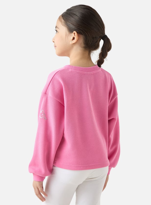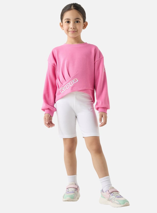 This logo print T-shirt with pleated detailing is perfect for active little girls. Made from a soft fabric, it's comfortable and breathable for all-day wear. The round neckline and long sleeves make it easy to wear, while the loose fit allows for freedom of movement. The eye-catching brand print adds a touch of style to this essential wardrobe staple.