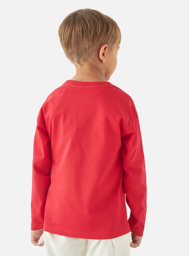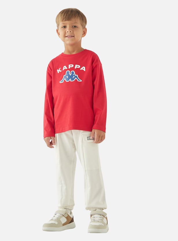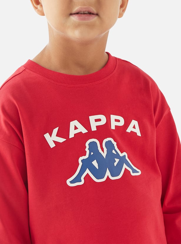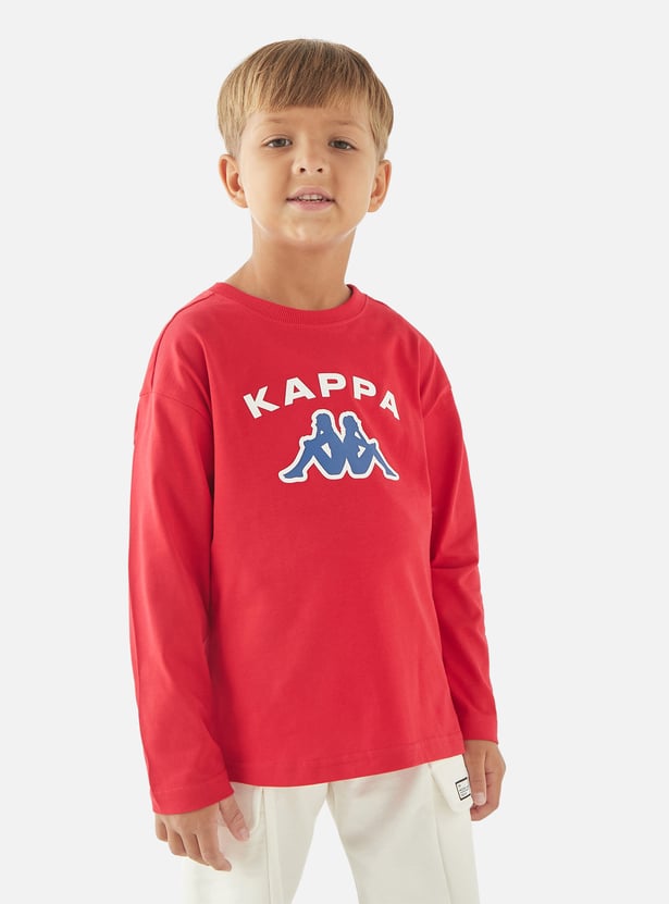 This logo print T-shirt is perfect for active kids. The long sleeves and round neckline provide extra coverage and warmth, while the logo print adds a touch of style.