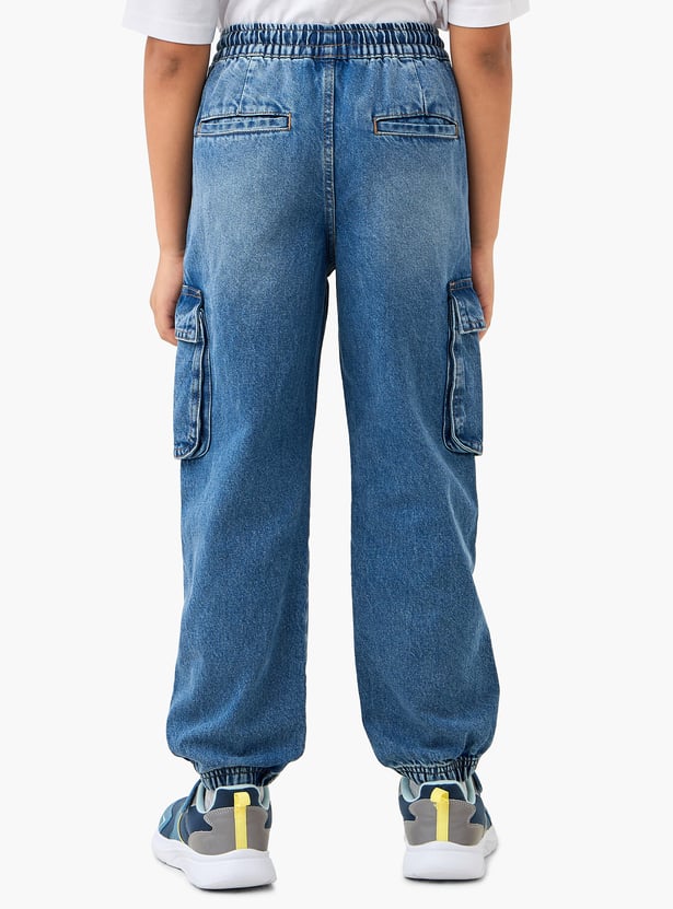 These jeans offer a blend of style and practicality. The multiple cargo pockets provide ample storage for everyday essentials. The elasticated waistband and cuffs ensure a comfortable and secure fit, allowing for ease of movement. These versatile jeans are perfect for everyday wear.
