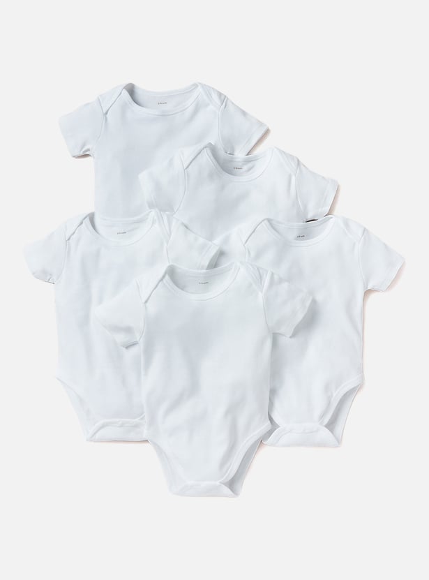 Solid Organic Bodysuit with Round Neck - Set of 5