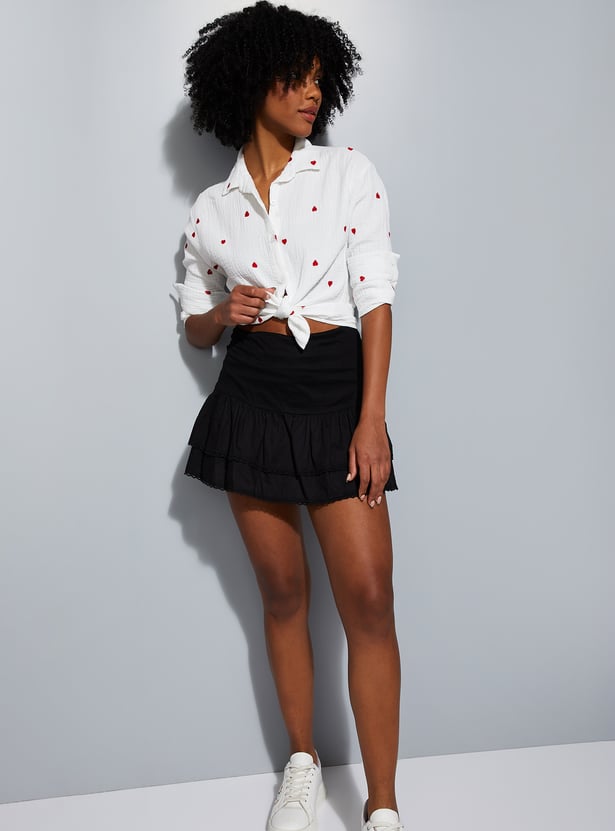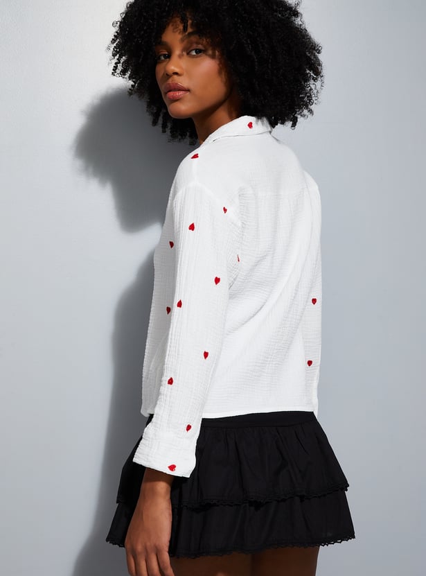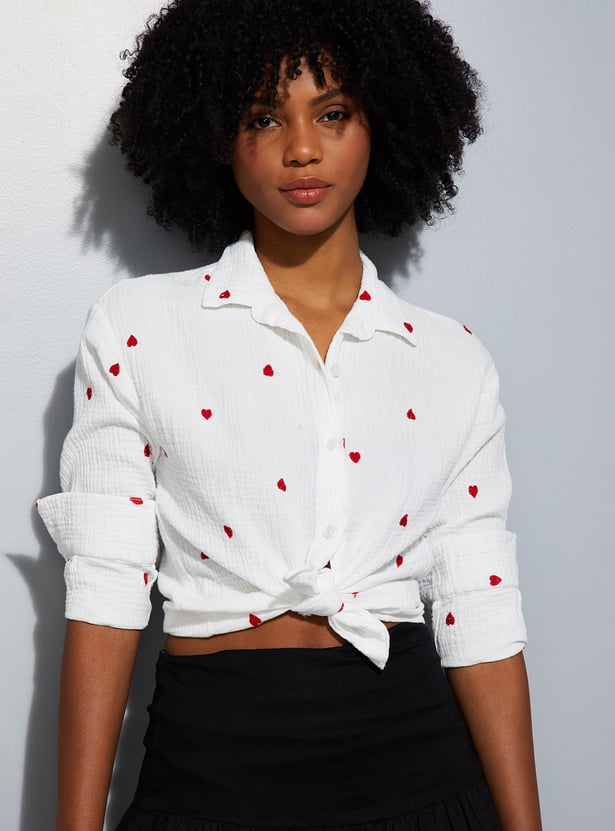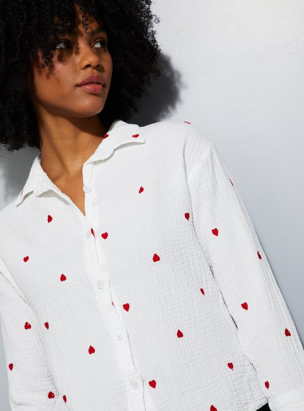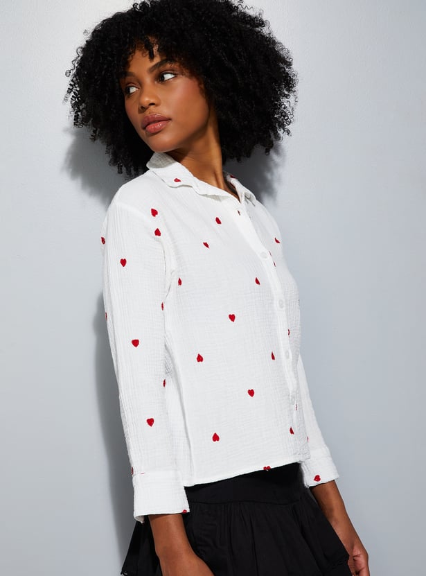 Add timeless elegance to your wardrobe with this embroidered shirt, featuring a classic spread collar, full sleeves with buttoned cuffs, and a sleek button placket. The delicate embroidery lends a refined touch, making it perfect for both workwear and casual outings.