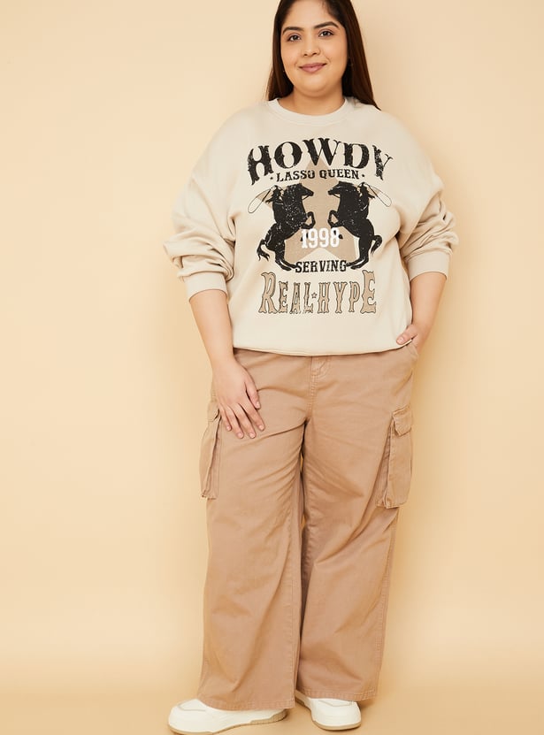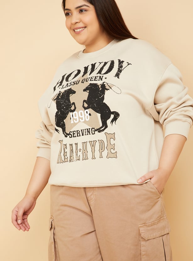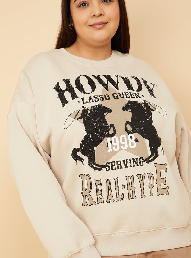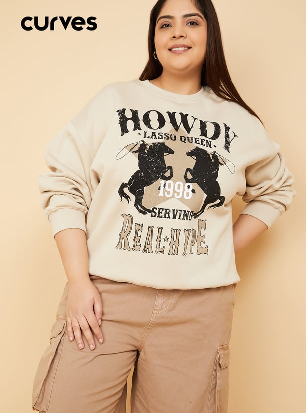 Stay cosy and stylish with this printed oversized sweatshirt, designed with a classic crew neck and full sleeves for a relaxed, laid-back vibe. Model Size :