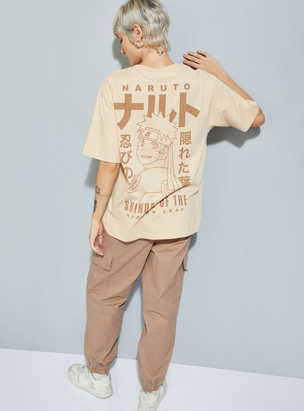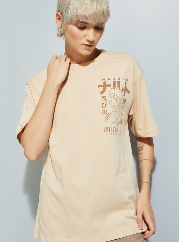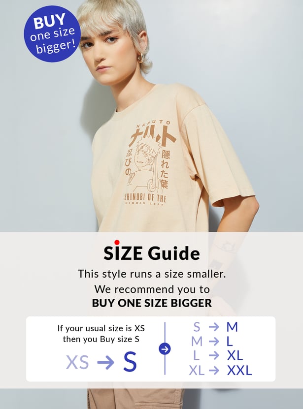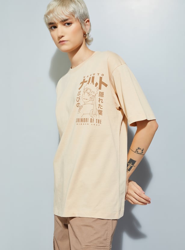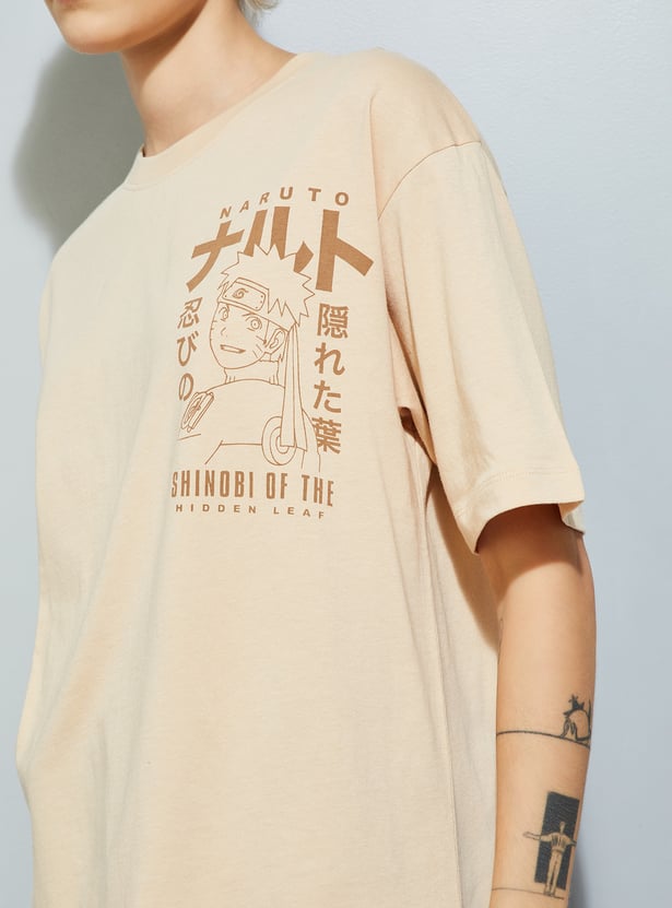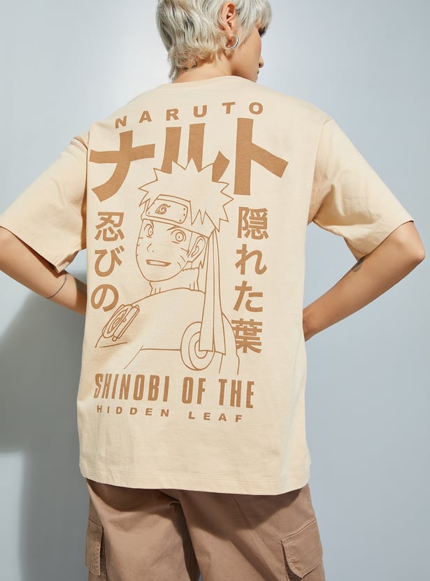 Show off your fandom with this Naruto print oversized T-shirt, styled with a round neck and half sleeves for a cool, relaxed fit.