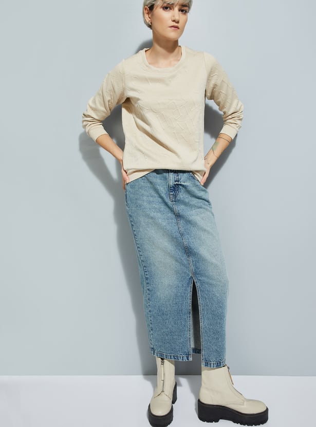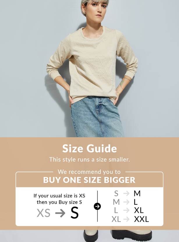 Refresh your winter basics with this patterned sweatshirt featuring a classic round neck and full sleeves. Soft, cozy, and easy to style, it’s perfect for everyday comfort. Model Size :