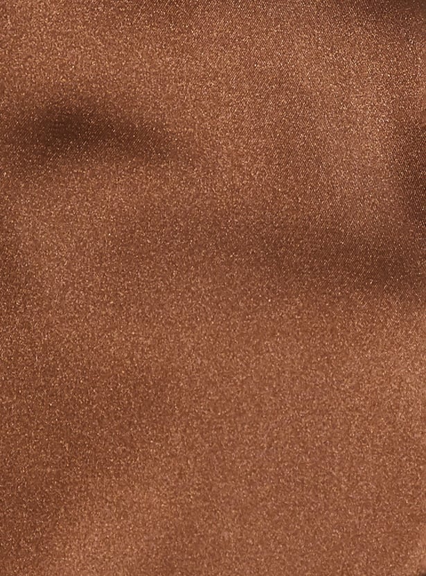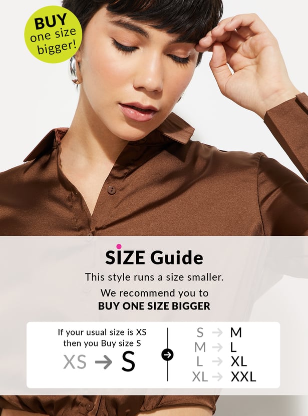Step out in style in this shirt. Crafted in a crop profile, it has a satin finish for a sophisticated look. This shirt features a spread collar, full sleeves, and buttoned cuffs.