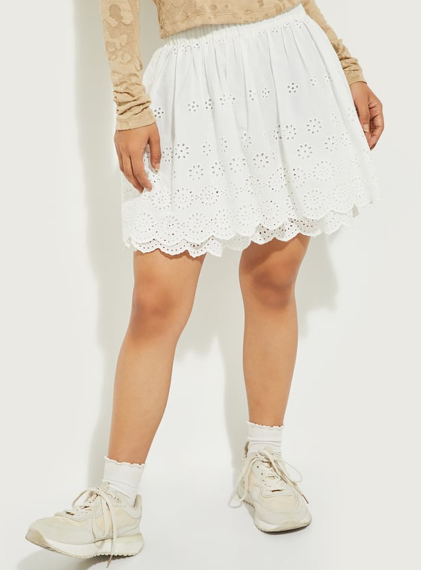 ALAYA F x URB_N Women Schiffli Embroidered Mini Skirt