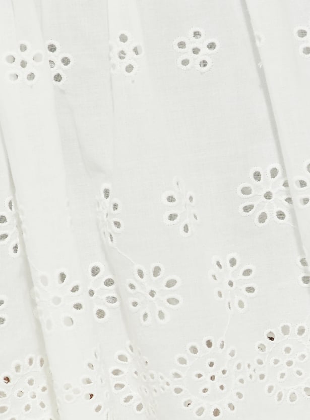 This schiffili embroidered mini skirt features delicate embroidery for a textured, elegant look and an elasticated waist for comfort and a flattering fit. The flared design adds a graceful, feminine touch to your outfit.