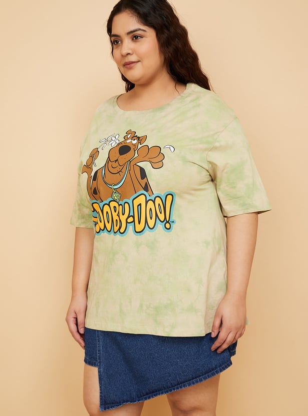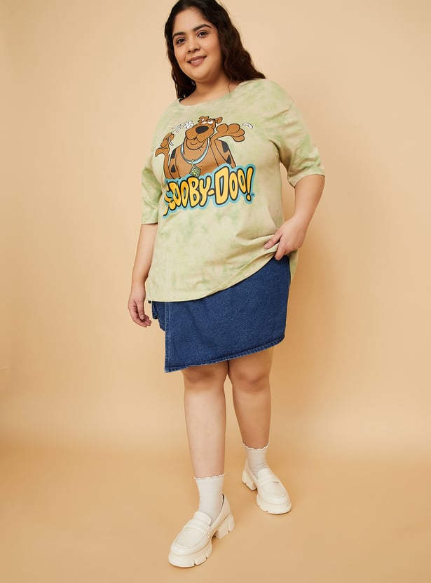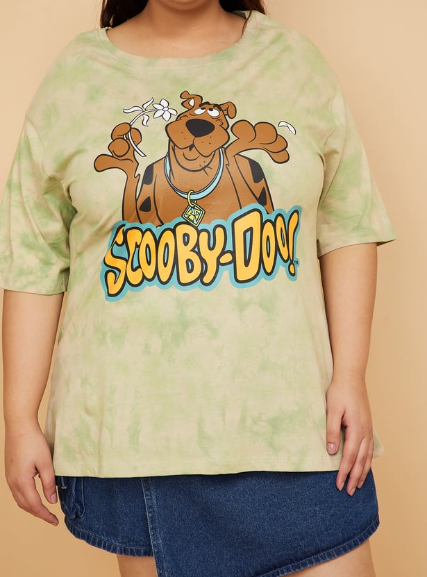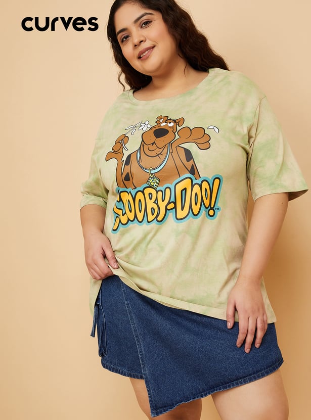 Bring playful nostalgia to your casual wardrobe with this Scooby Doo print oversized t-shirt. Featuring a round neck and half sleeves, it offers a relaxed fit and a fun graphic that adds a dose of character to your everyday look. Model Size :
