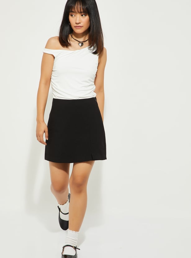 ALAYA F x URB_N Women Solid One-shoulder Crop Top