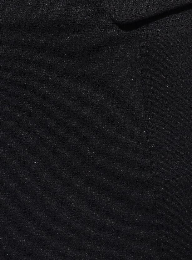 Elevate your formal wardrobe with this textured regular fit blazer, featuring full sleeves, a notched lapel, button closure, and functional pockets for a sharp, polished look.
