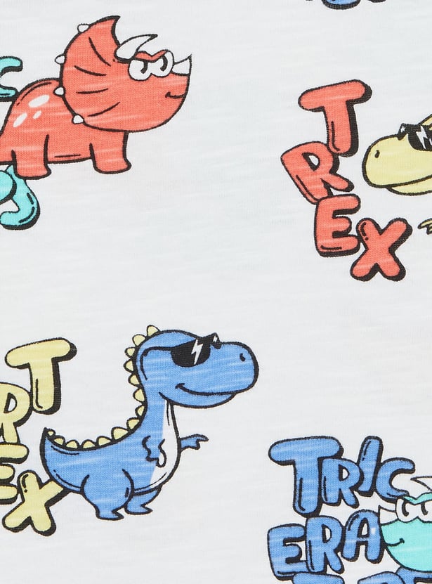 Get your little one vacation-ready with this comfortable and stylish all-over printed T-shirt featuring short sleeves and a crew neck.