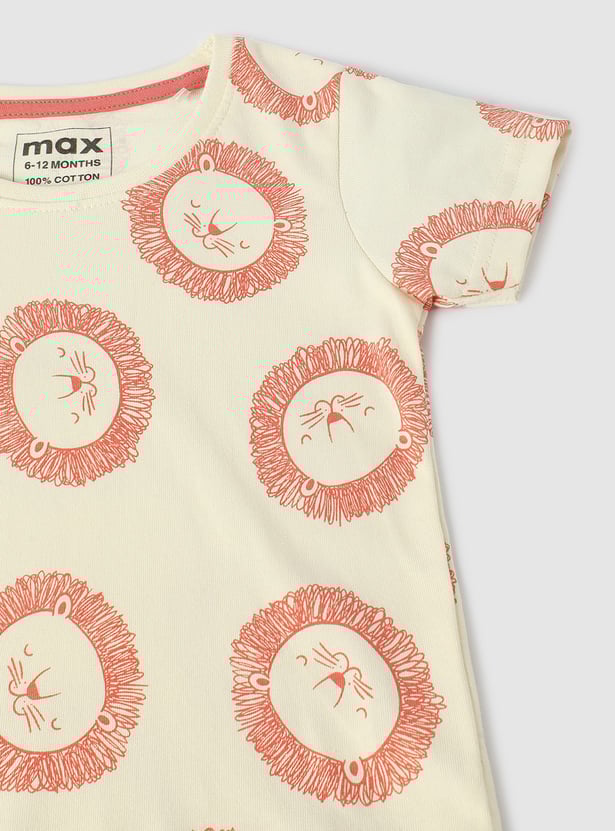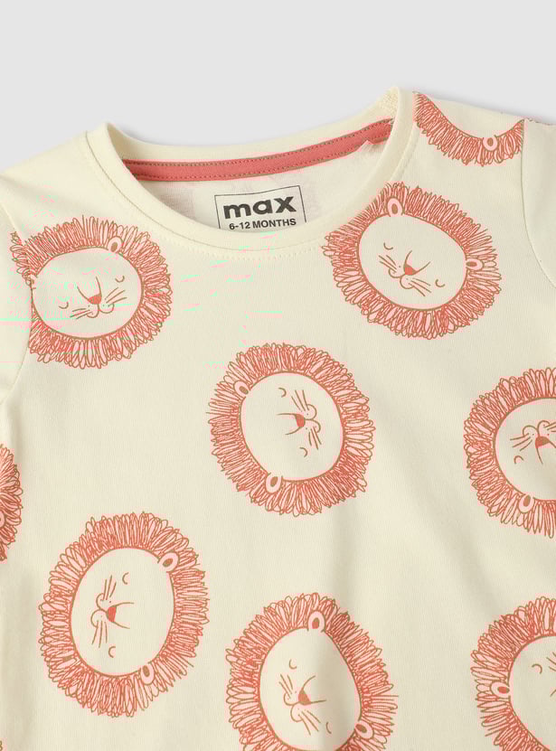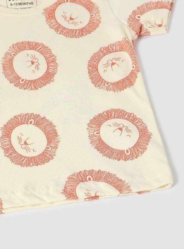 Get your little one vacation-ready with this comfy and stylish all-over printed T-shirt. It features short sleeves and a crew neck, ensuring comfort and a fun style for sunny days and exciting adventures.