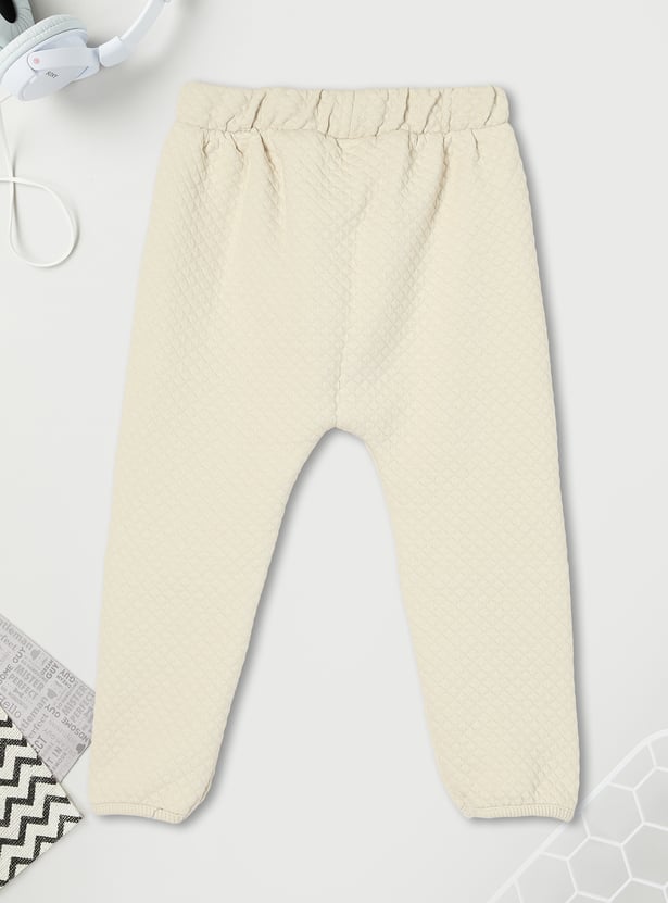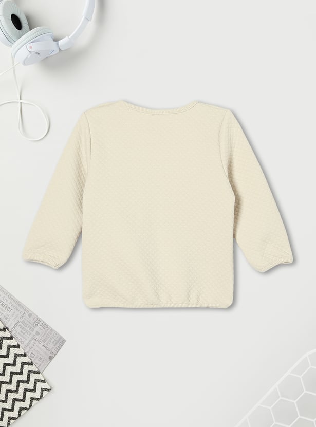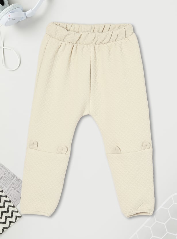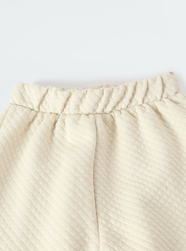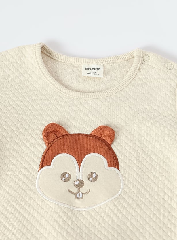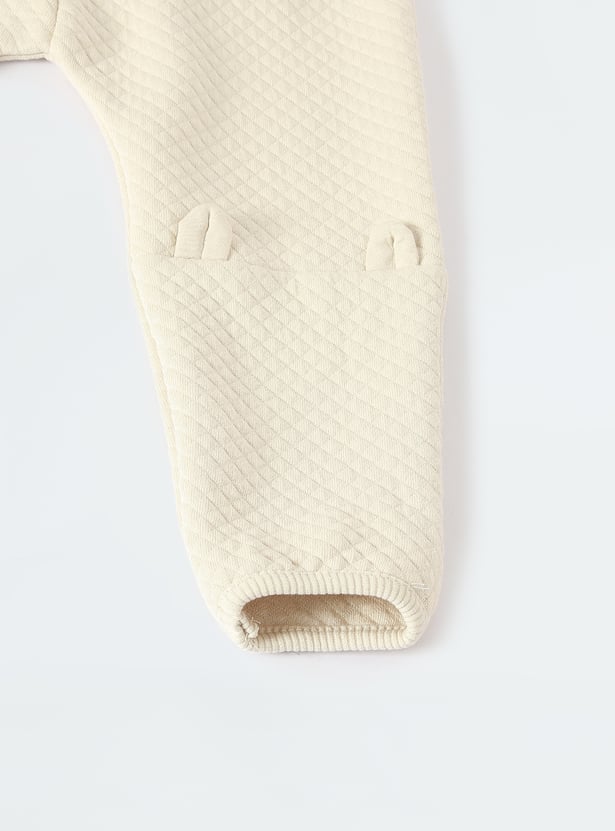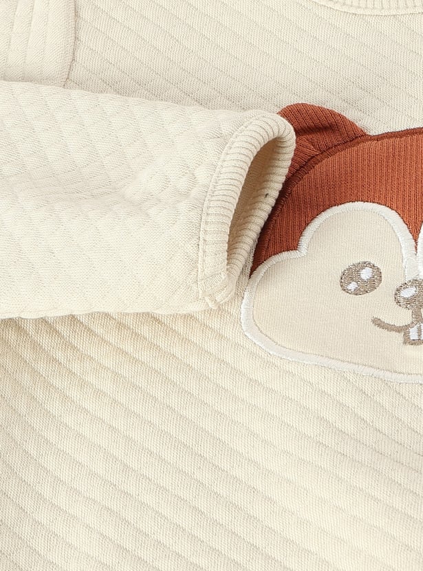 Cosy up your little one for the season with this adorable quilted sleepwear set. The t-shirt features a cute applique design, a crew neck with snap button closure, and full sleeves for extra warmth. Paired with elasticated waist pants for added comfort, this set ensures your little one stays snug and stylish all night long.