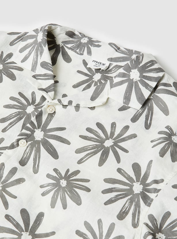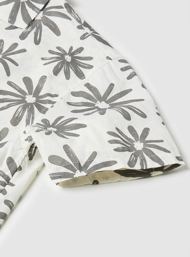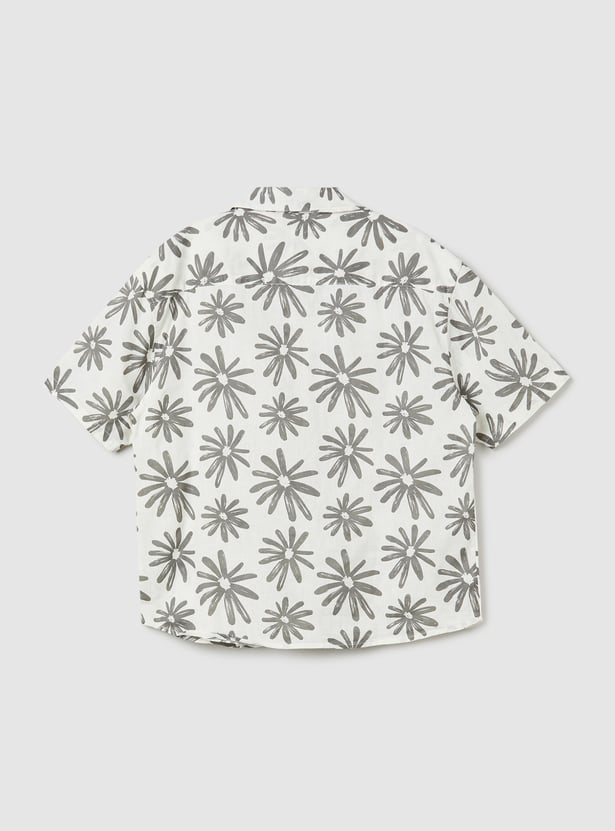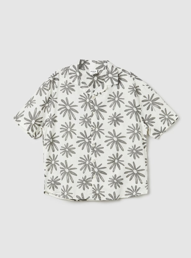 This shirt is a fun and vibrant addition to any summer wardrobe. Featuring a tropical floral print, it offers a relaxed, boxy fit for ultimate comfort and style. Ideal for vacations or casual outings, this shirt with a resort collar and half sleeves brings a laid-back vibe.