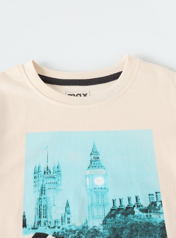 He’ll make a big statement with this T-shirt. It features a bold Big Ben print, perfect for young explorers and budding travellers. The crew neck and half sleeves complete the look.