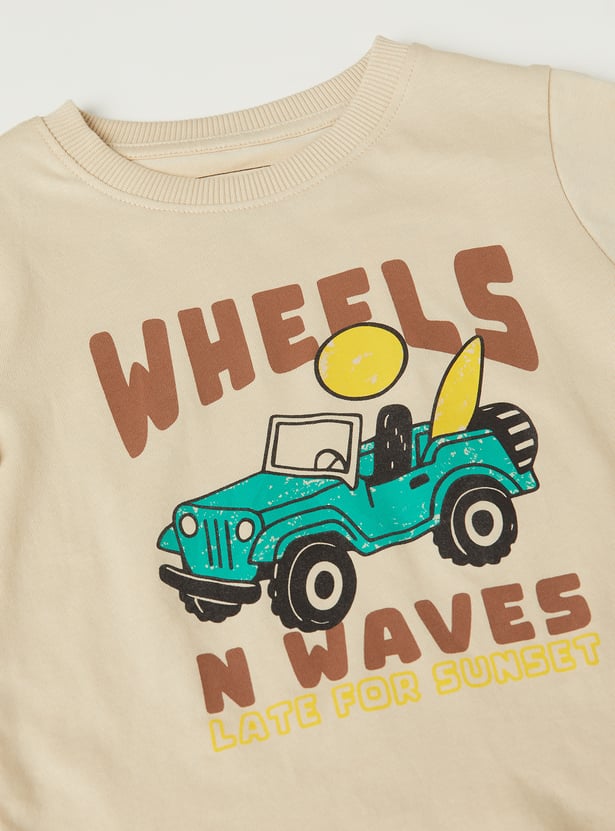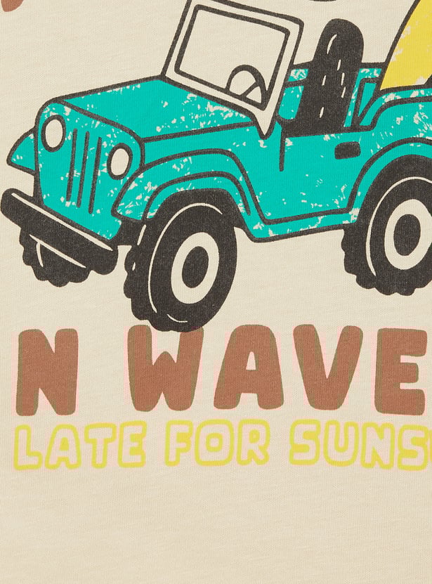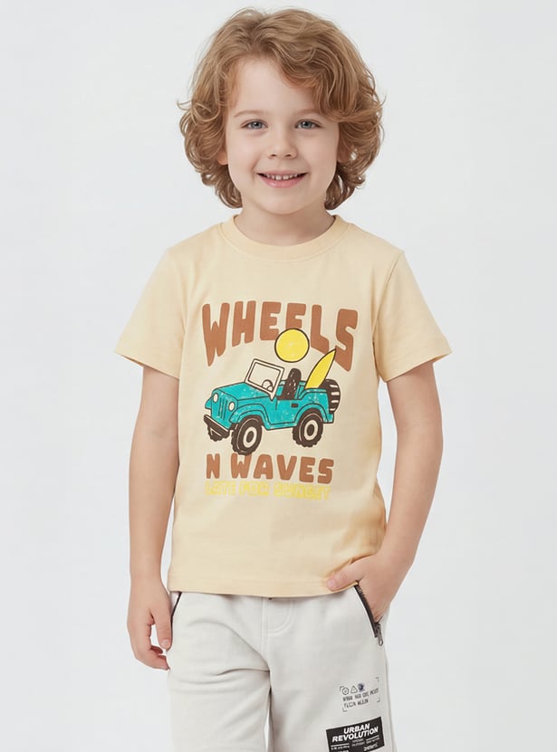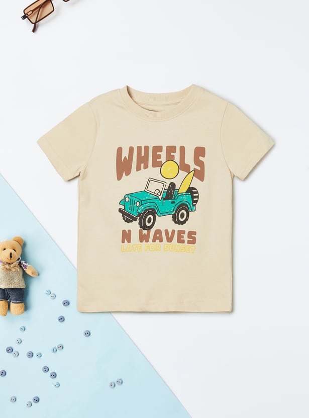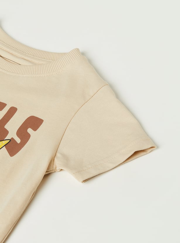 Brighten up your kid’s wardrobe with this graphic-printed T-shirt, featuring a crew neckline and half-sleeves for everyday comfort and a playful style.
