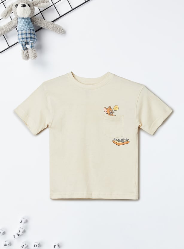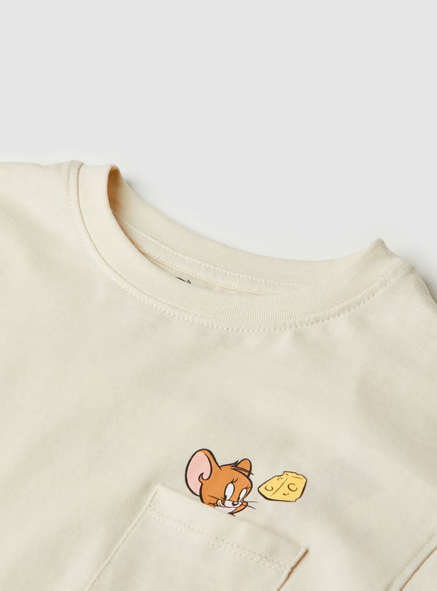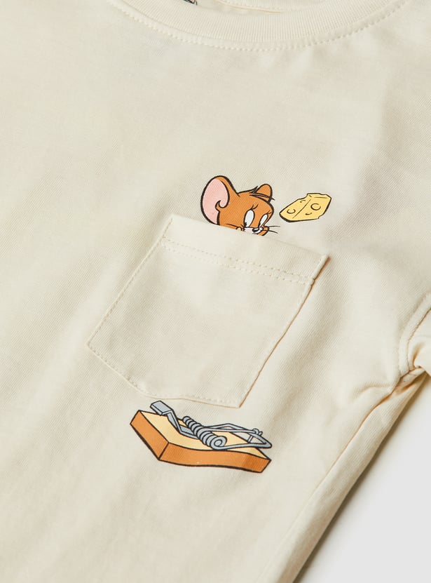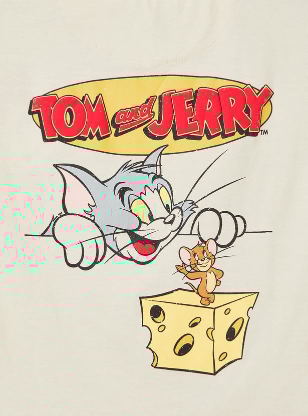 Let your little one show off their favorite characters with this Jerry print T-shirt, featuring vibrant graphics for a fun, playful look. The crew neck and half sleeves keep it comfy and casual.