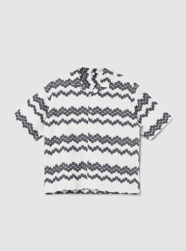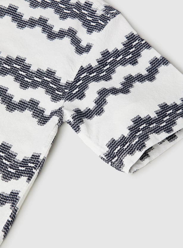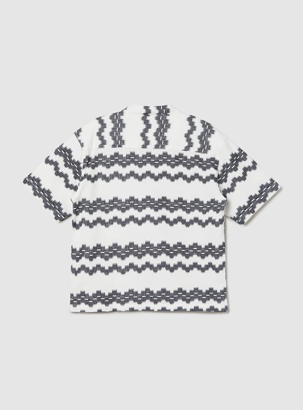 Add a vibrant touch to your wardrobe with this knit shirt, featuring a stylish resort collar and button placket for a relaxed, yet polished look. The half sleeves offer a breezy fit, making it perfect for warm weather and casual outings.