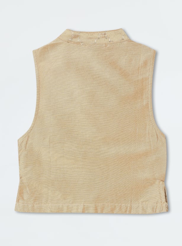 Boys Kurta Set with Embroidered Nehru Jacket
