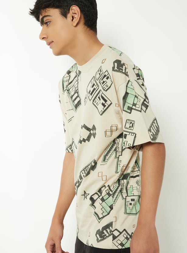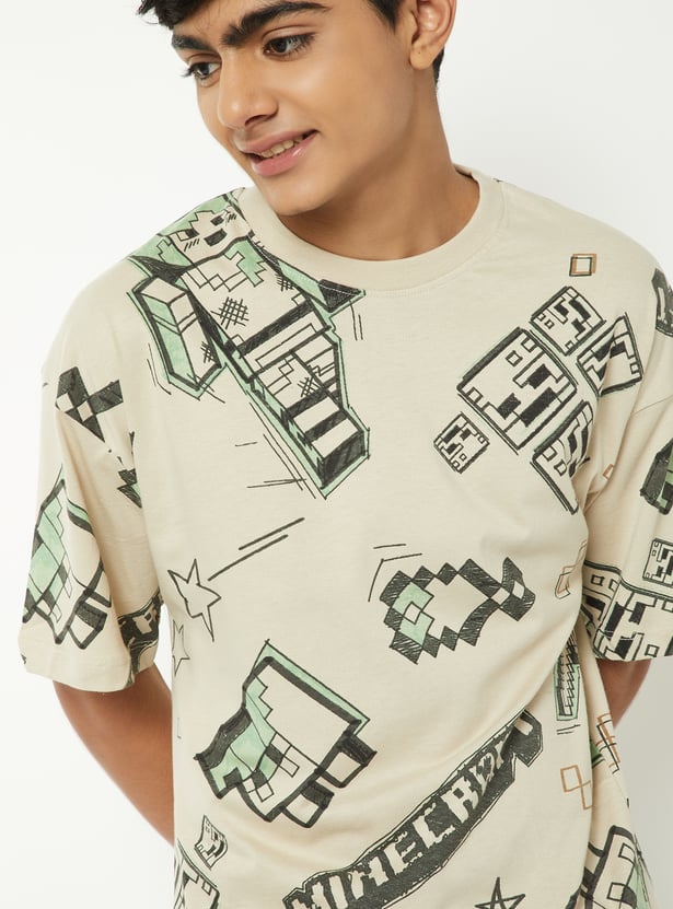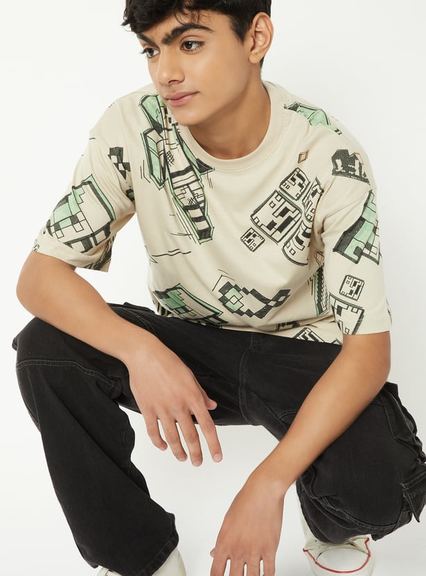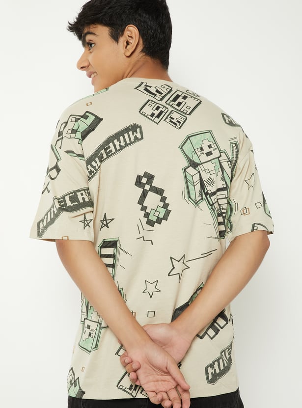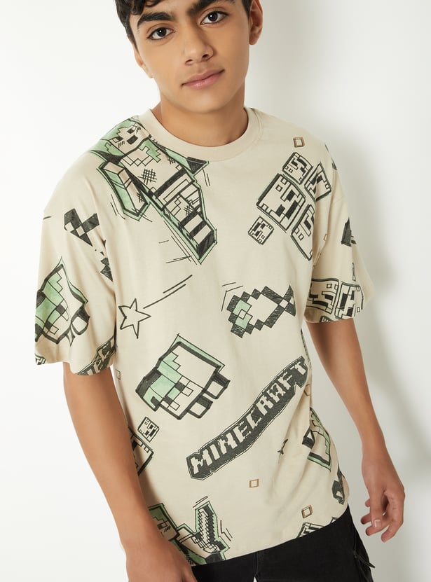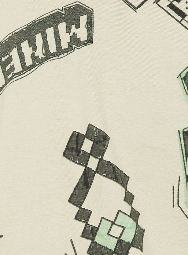 This Minecraft printed t-shirt features a classic crew neck and half sleeves, offering a comfortable fit with a pop of personality. Soft and easy to style, it's perfect for everyday wear.