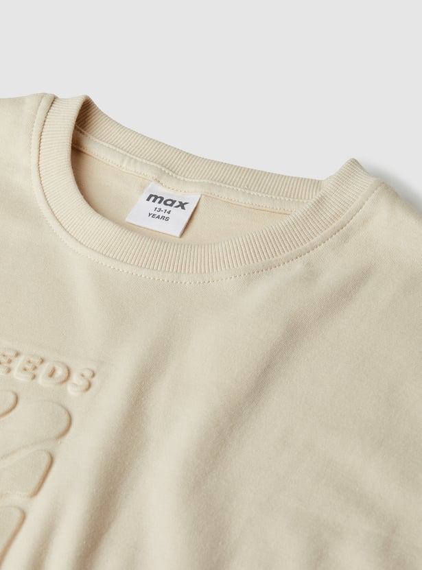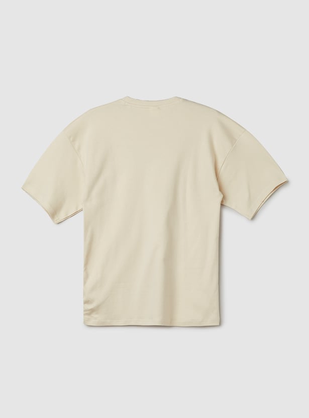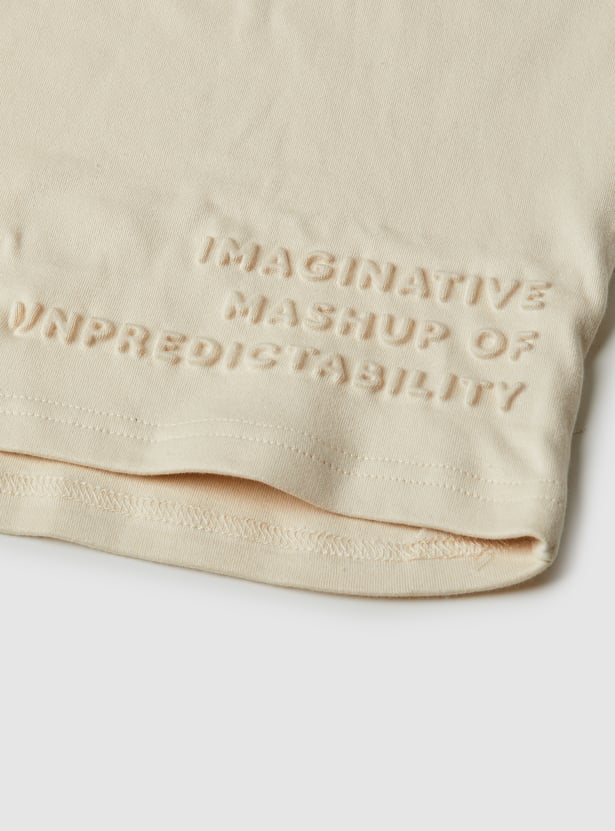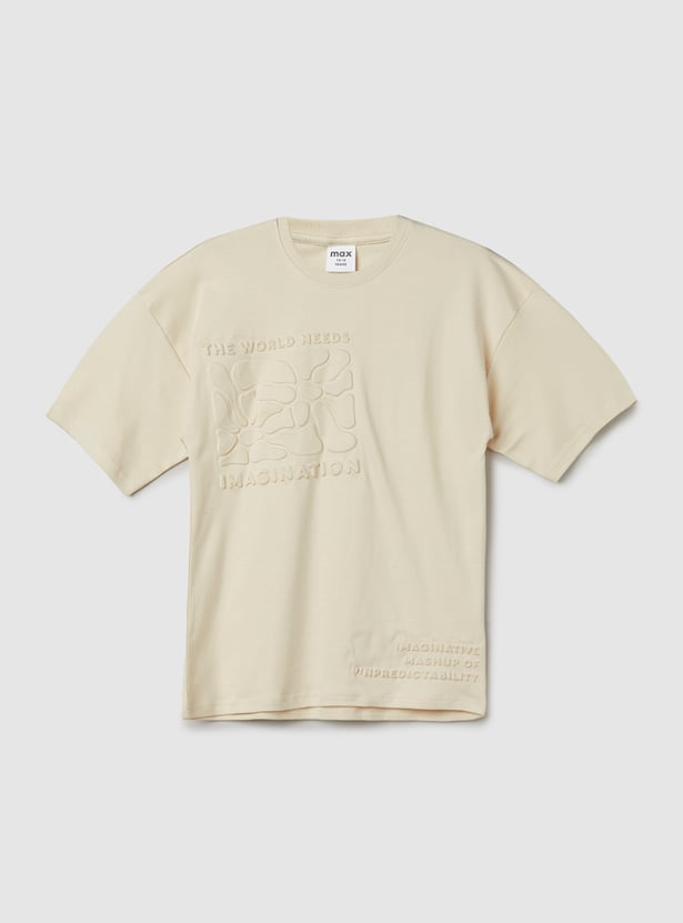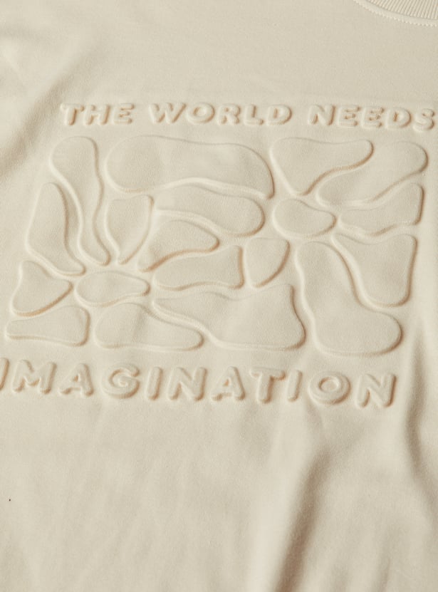 Make a statement with this embossed oversized T-shirt, designed with drop shoulders and half sleeves for a relaxed, trendy fit. The classic crew neck adds a timeless touch to the modern design.