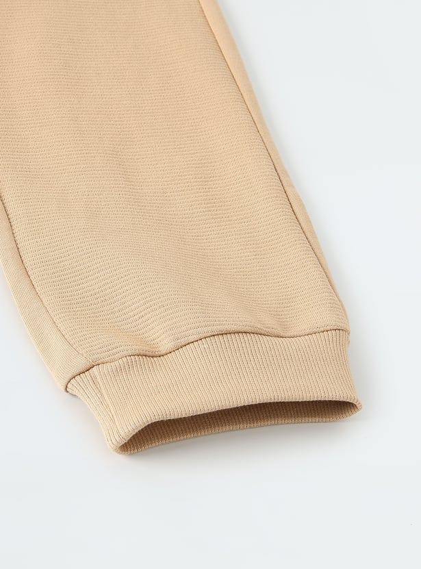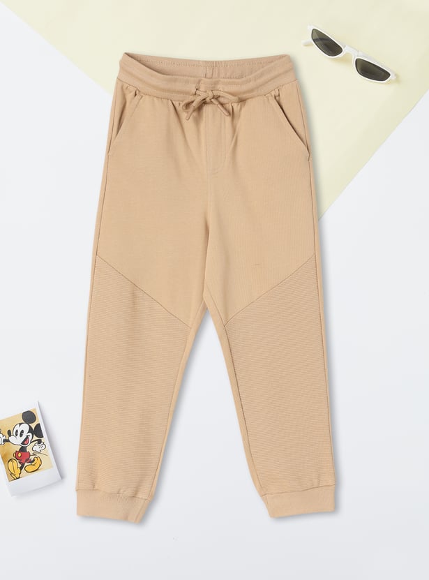 Perfect for boys always on the move, this pair of joggers is the ultimate blend of comfort and style. The tonal-panelled design adds to the visual interest. The adjustable drawstring waist ensures a secure fit, while the cross and back patch pockets provide functionality.