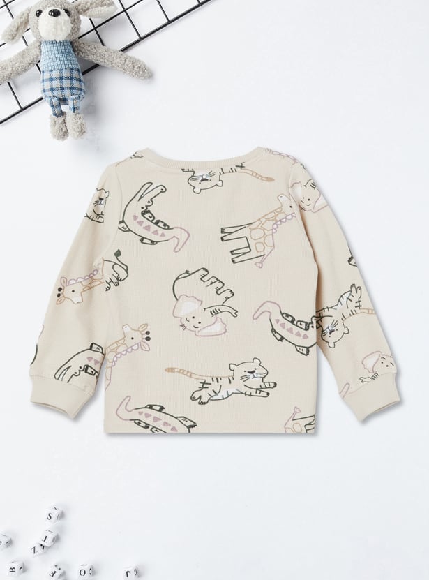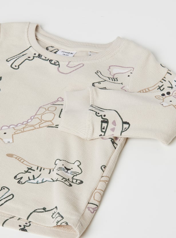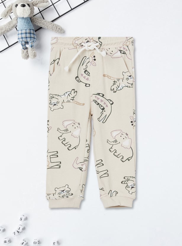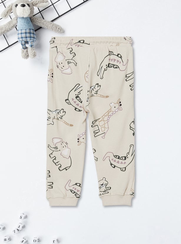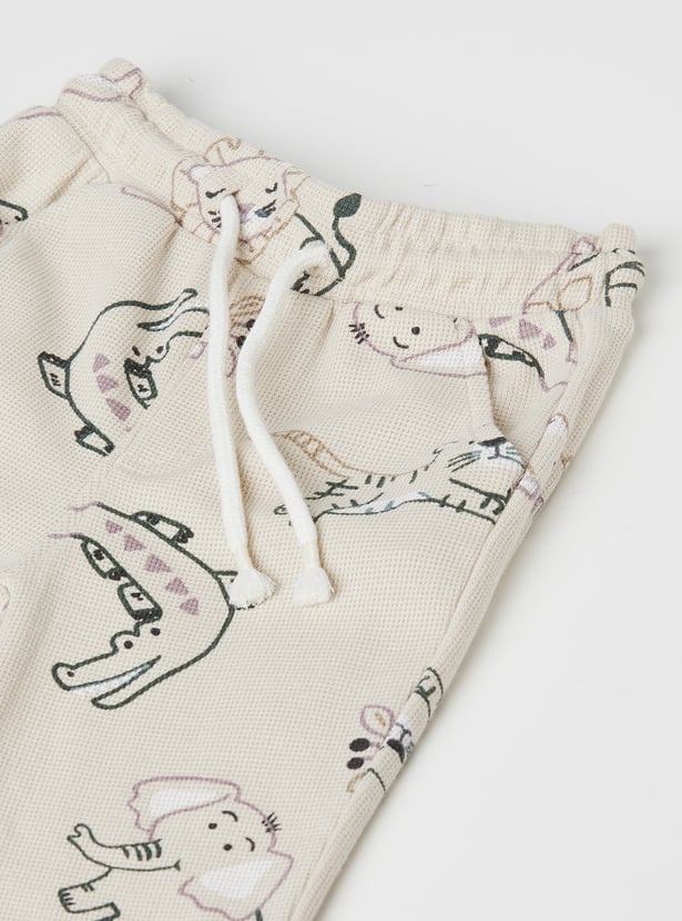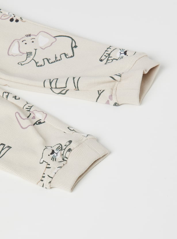Lounge in style with this printed joggers set. The T-shirt features a classic crew neck and full sleeves, perfectly paired with matching joggers designed with a drawstring closure for a secure, relaxed fit.