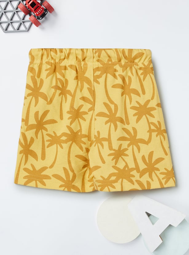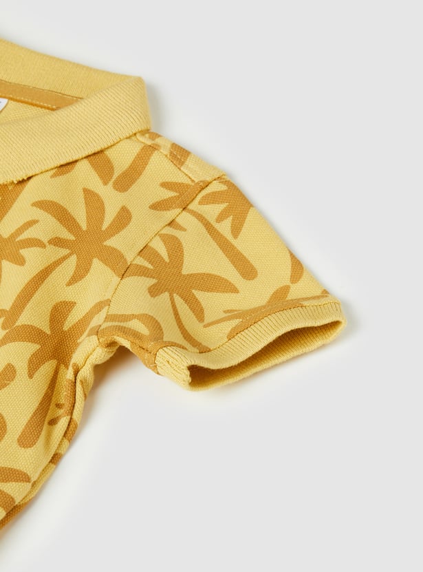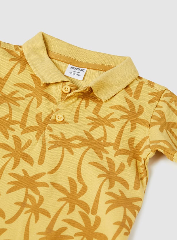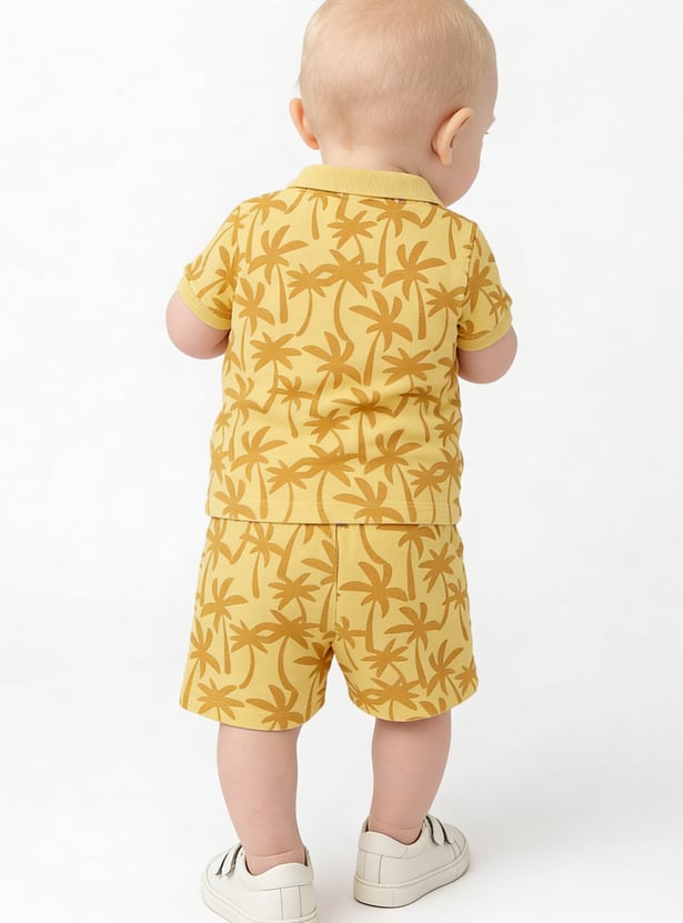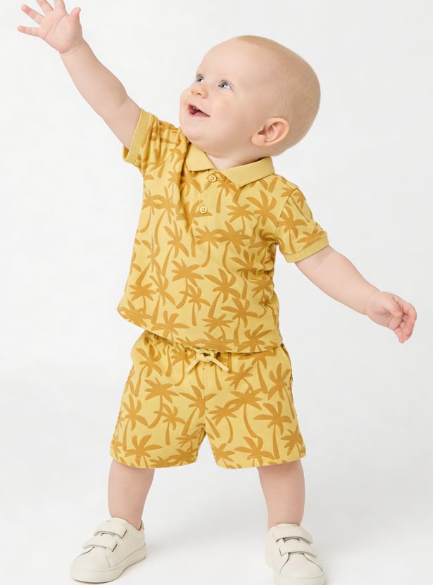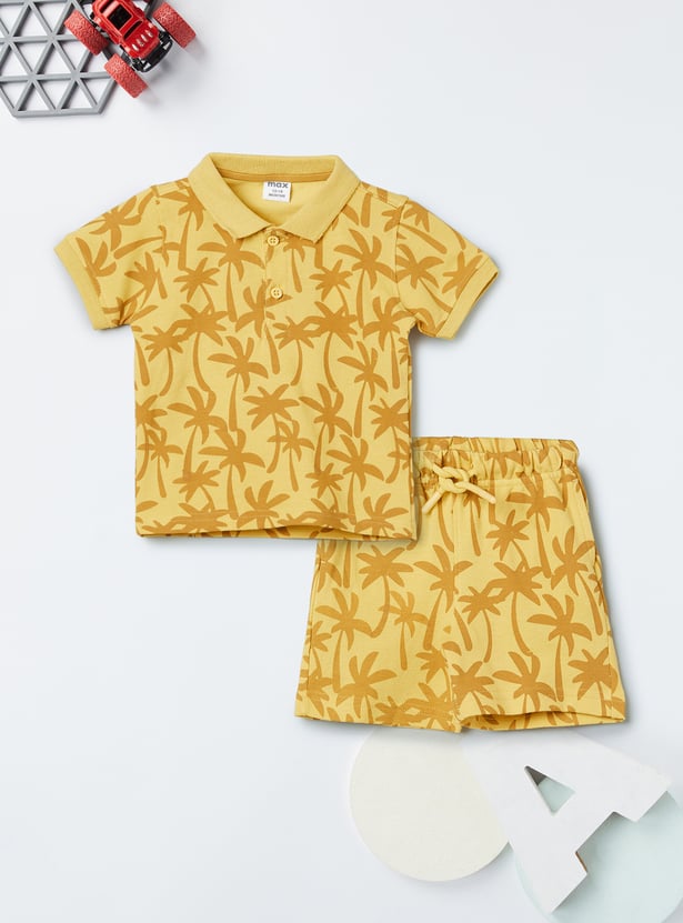 Stay casual and comfortable with this printed shorts set designed for everyday wear. Featuring a polo neck T-shirt with half sleeves and shorts with a drawstring closure and handy pockets.