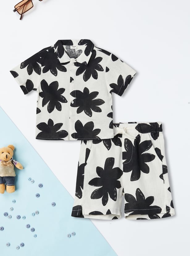 Perfect for sunny days and endless play, this set includes a printed shirt and comfy shorts. The half sleeves, button placket, and spread collar keep it cool and breathable, while the drawstring closure on the shorts with side pockets ensures a snug, adjustable fit.