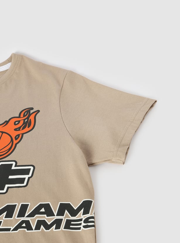 Spruce up your little one's wardrobe with this T-shirt. Featuring a classic crew neck, playful print, and half sleeves, it’s the ideal addition to infuse some fun into their everyday outfits.