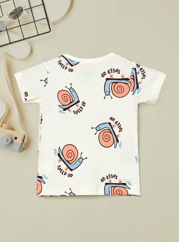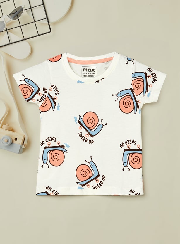 Add some fun to your little one's wardrobe with this printed t-shirt! Featuring half sleeves and a crew neck, it offers a comfortable and easy fit, perfect for everyday wear.