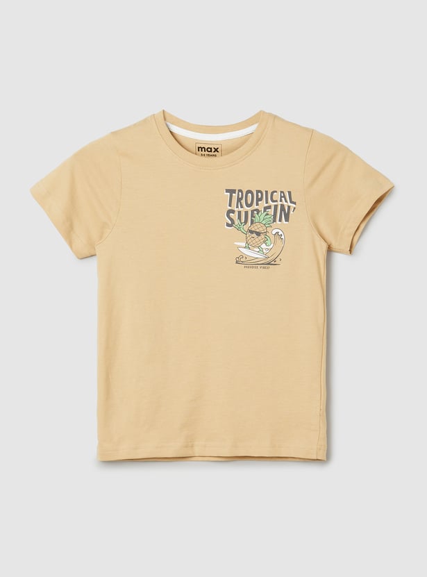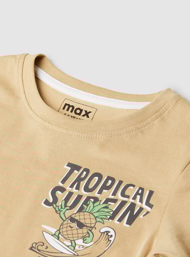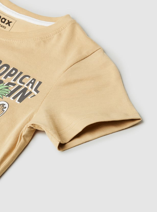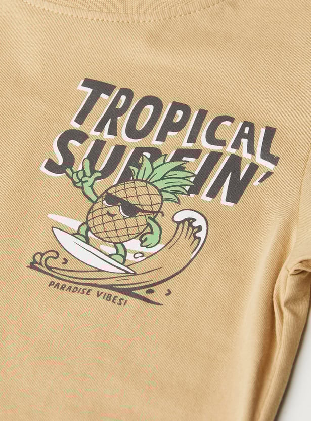 Step in comfort with this printed T-shirt, featuring cute designs that showcase your playful style. With a crew neck and half sleeves, it's the perfect mix of comfort and flair.