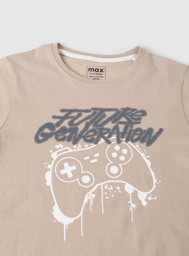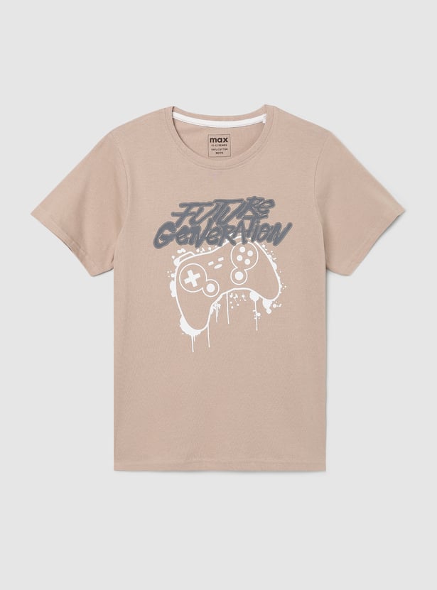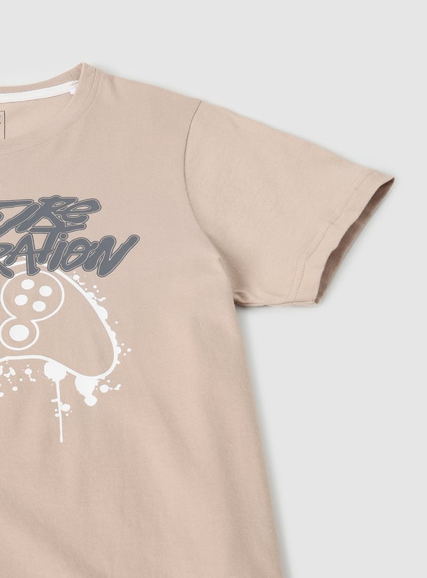 This printed T-shirt features a classic crew neck and half sleeves, offering comfort and style in one. The bold print adds a fun touch to your everyday look.