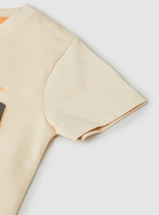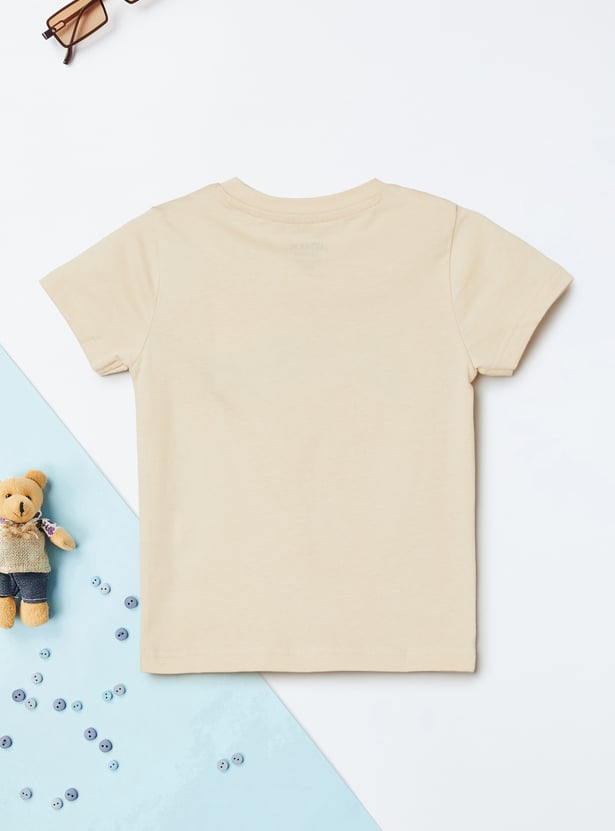 Brighten up your everyday style with this printed t-shirt, featuring a classic crew neck and comfortable half sleeves. Its bold print adds a fun, laid-back touch to any casual outfit.