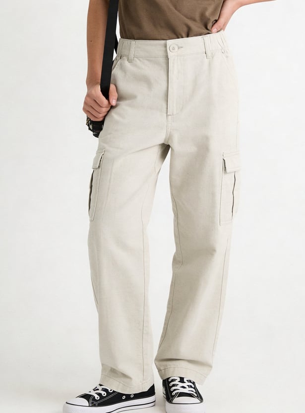 Boys Solid Cargo Trousers