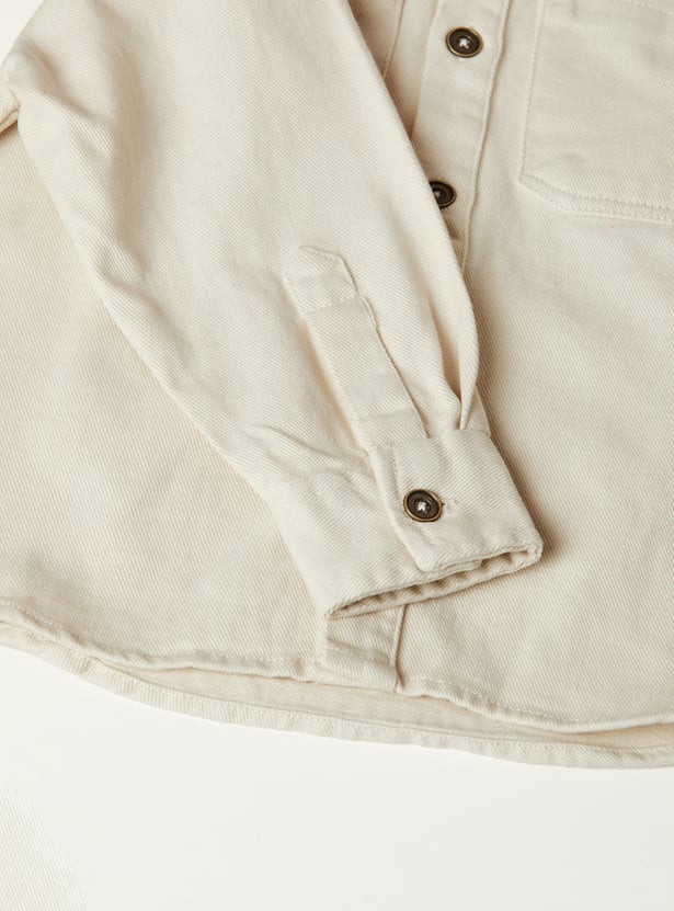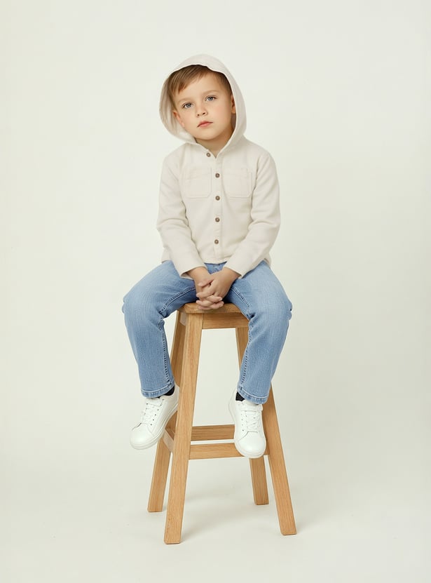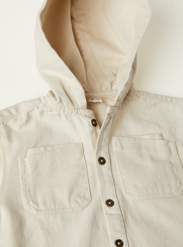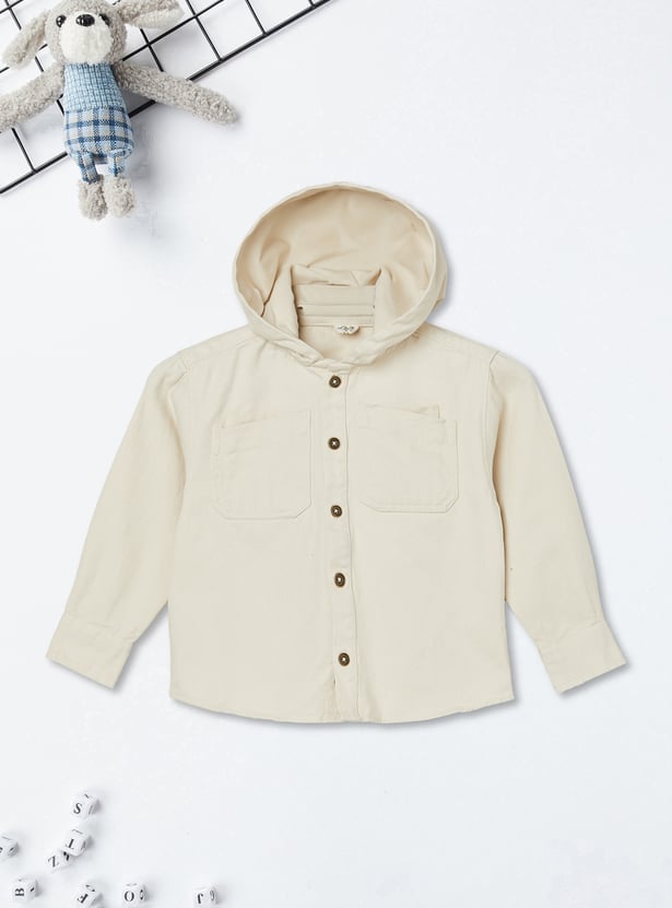 Boys Solid Hooded Oversized Shirt