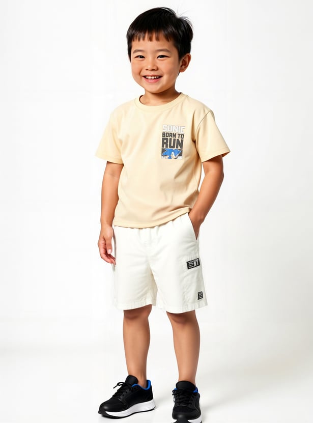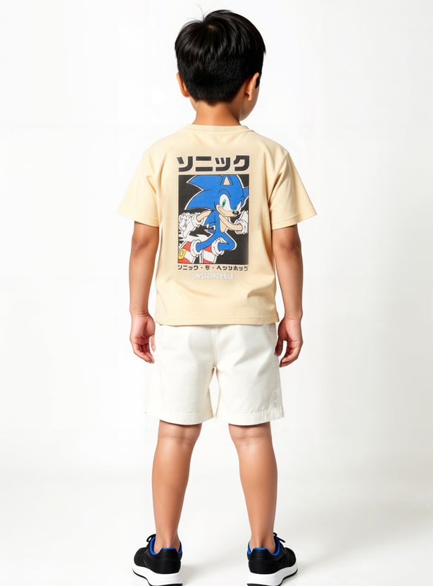 Let him showcase his love for Sonic with this oversized t-shirt, featuring a classic crew neck and half sleeves for a relaxed fit. The bold back print adds a dynamic touch, making it perfect for casual outings or everyday comfort.