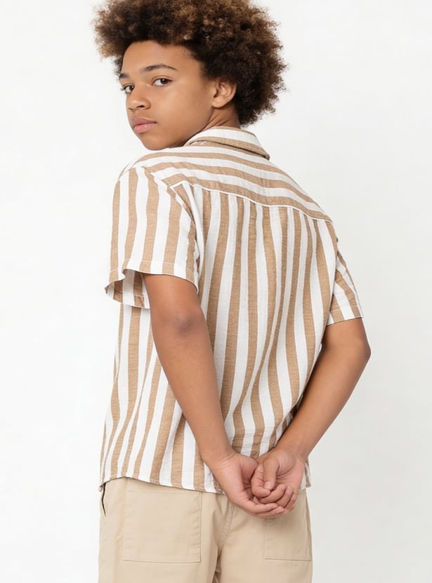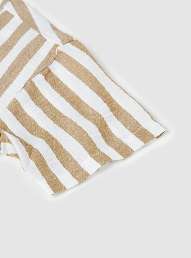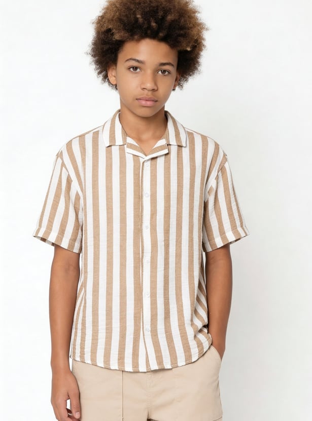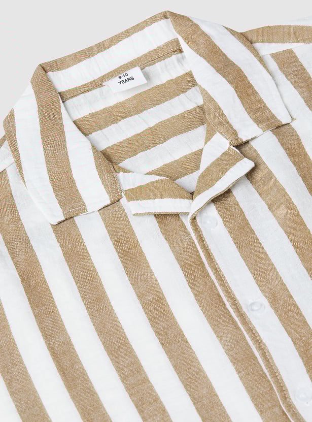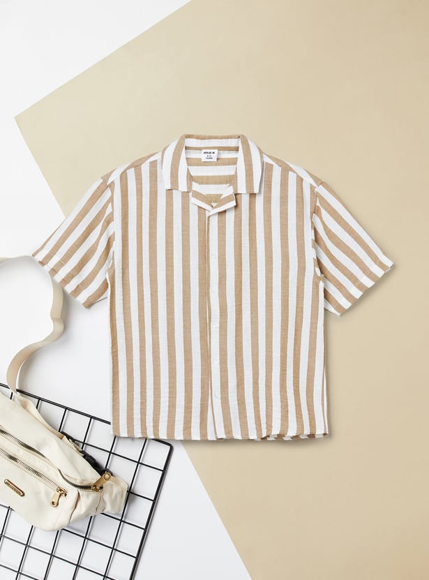 Refresh your casual wardrobe with this striped shirt designed for relaxed style. Featuring a Cuban collar, half sleeves, a button placket, and a straight hem for easy everyday wear.