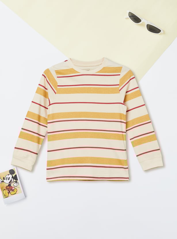 Step out in casual style with this striped T-shirt. Featuring a crew neck and full sleeves, it offers a comfortable, classic fit for everyday wear.