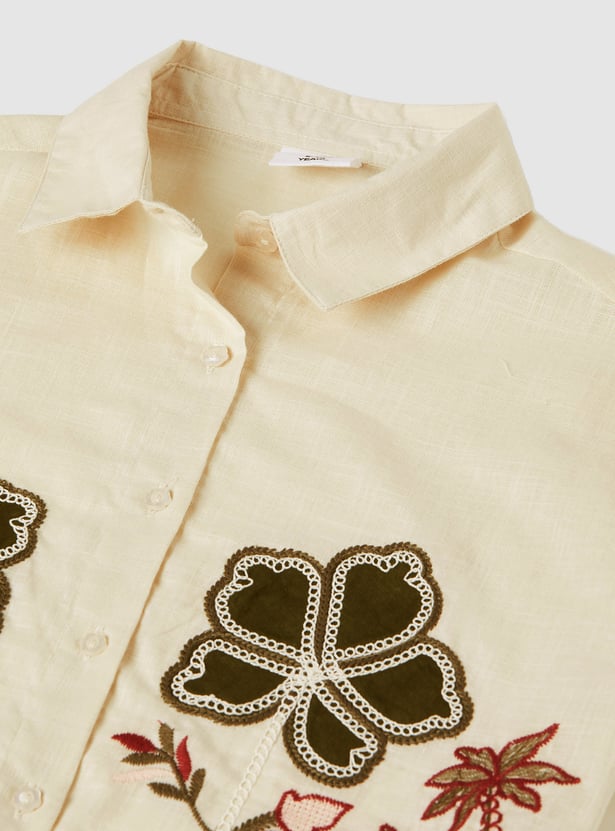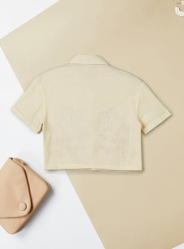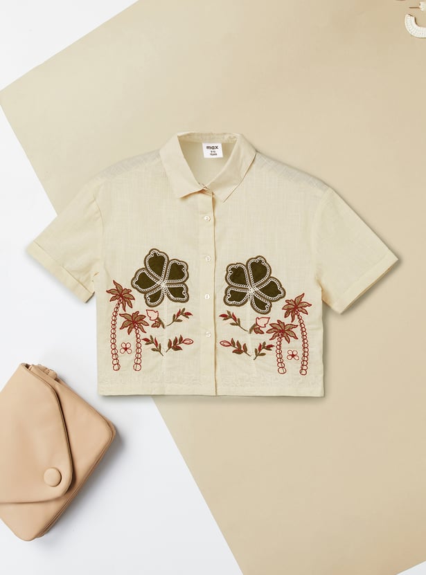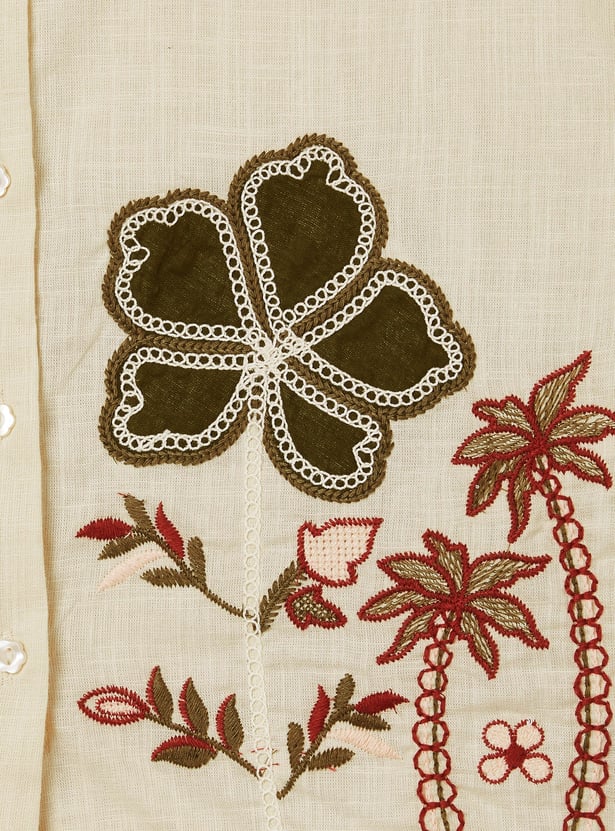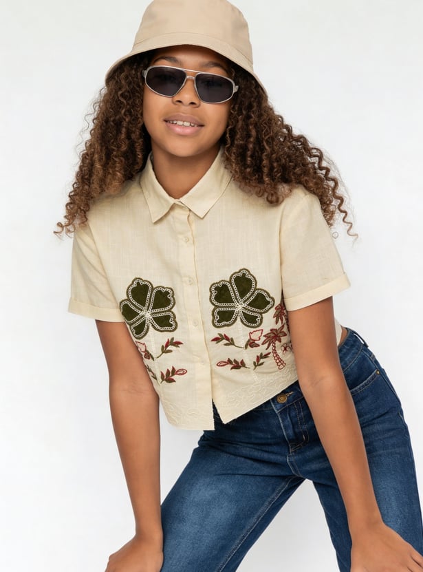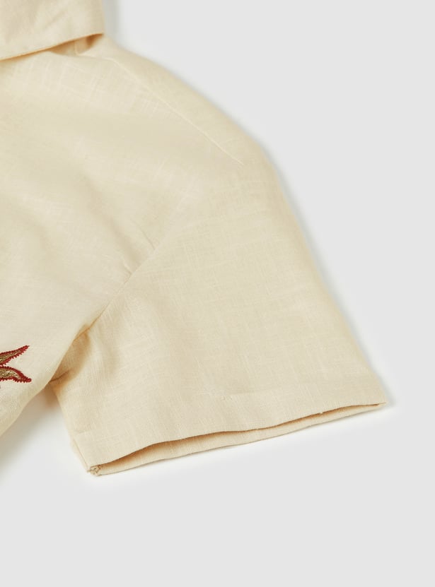 This charming embroidered shirt is perfect for your little one. Featuring intricate floral patterns, it combines elegance with a playful design. The shirt collar and half sleeves add a classic touch, while the button placket ensures easy wear.