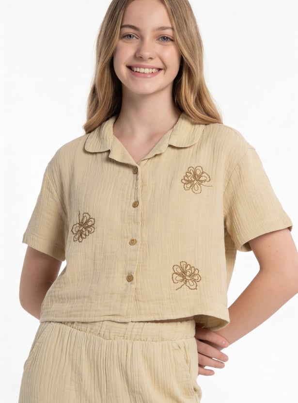 Girls Embroidered Resort Collar Shirt