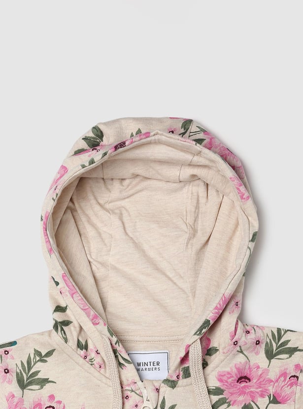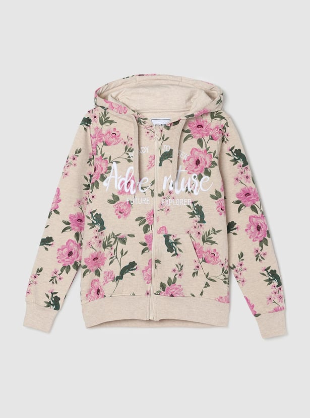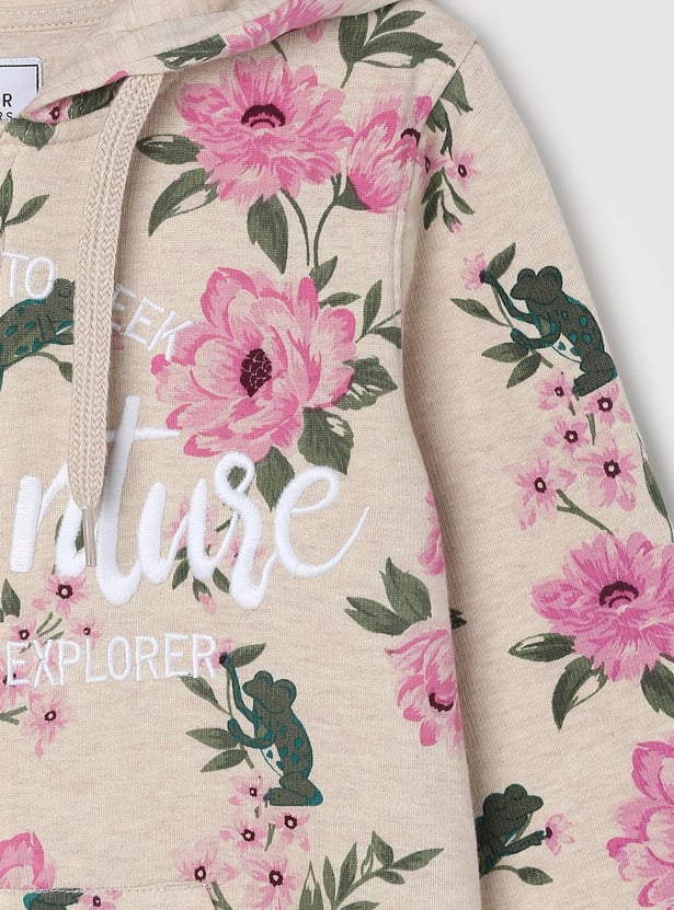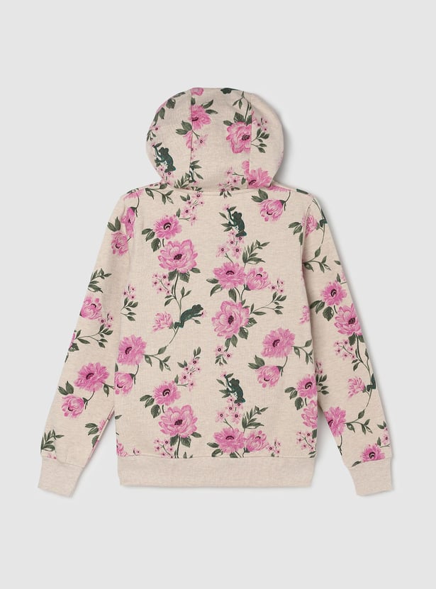 Girls Floral Printed Hooded Sweatshirt