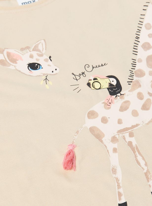 Girls Giraffe Printed Layered Sleeves Top