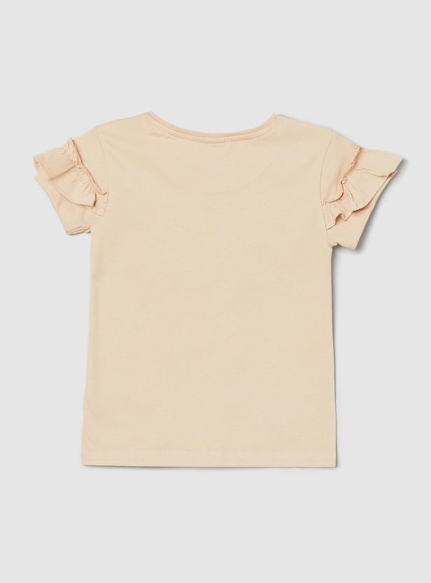 Designed with cute a giraffe print, this top with a round neck and ruffled accent on the layered sleeves lends a style upgrade to your little one’s everyday wardrobe.