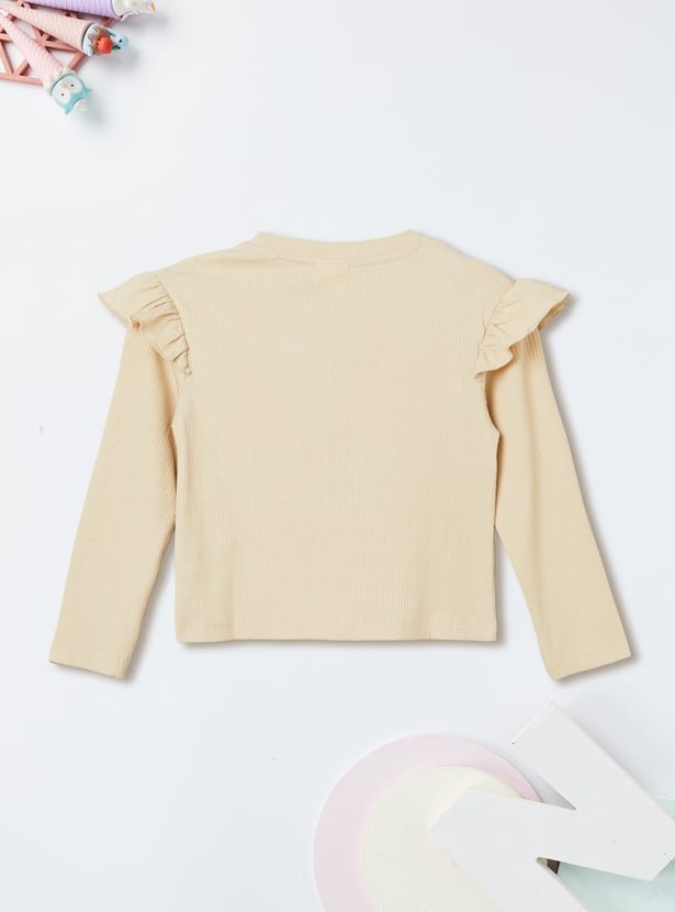 Step out in elegant charm with this pearl embellished top. Featuring a round neck, full sleeves, and delicate ruffles on the surface, it adds a feminine and stylish touch to your look.