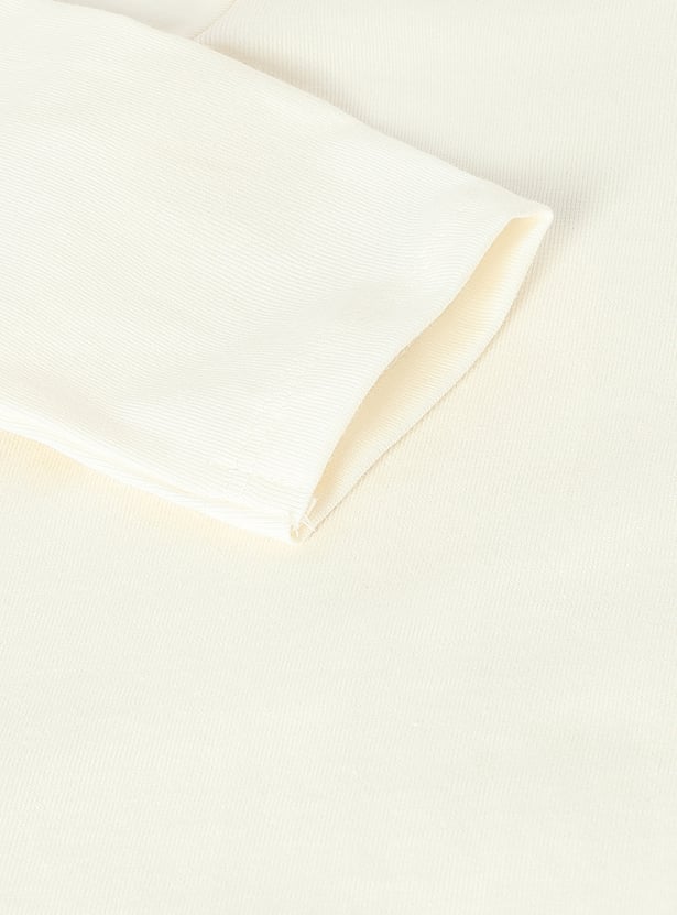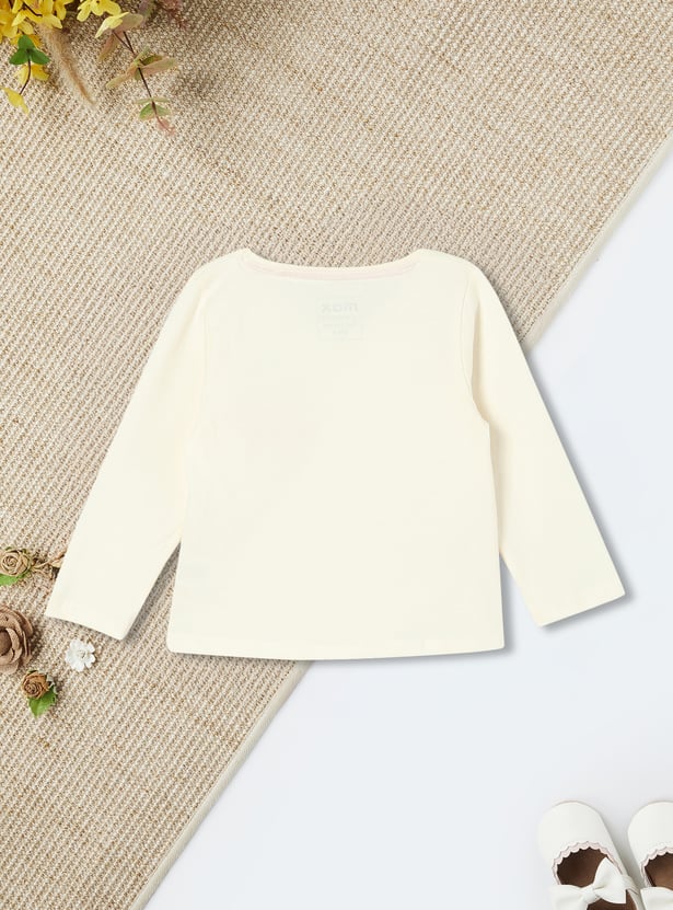 Add a playful twist to your kid's casual wardrobe with this charming placement print T-shirt. Featuring full sleeves and a classic round neck, it’s perfect for keeping them stylish and comfortable while they play.