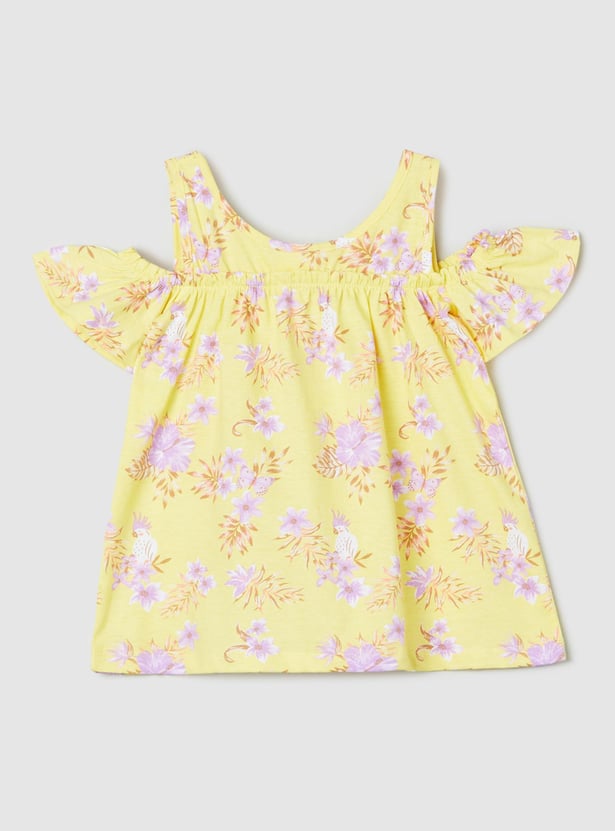 Girls Printed Cold Shoulder Top