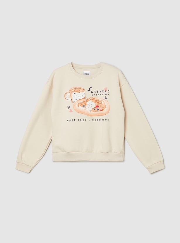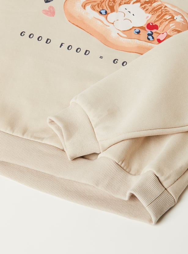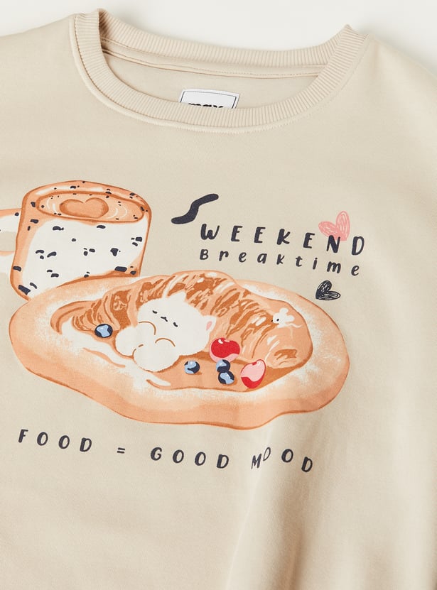 Add a fun twist to your everyday layers with this printed sweatshirt. Designed with a classic round neck, full sleeves, and a ribbed hem, it brings comfort and charm together in one easy-to-wear piece.
