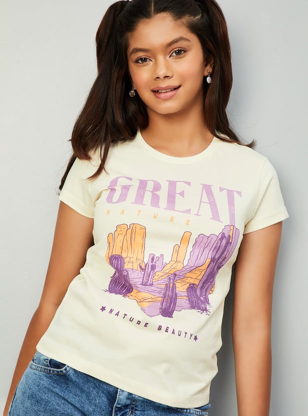 Make a statement with this printed sleeveless T-shirt. Designed with a round neck for a clean, casual look and all-day comfort.