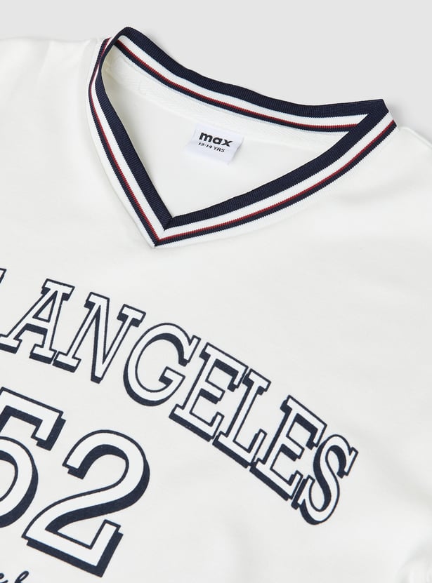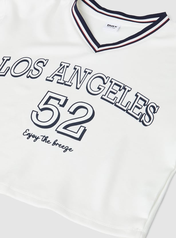 Level up your chill game with this printed t-shirt featuring half sleeves and classic v-neck for a comfortable and relaxed fit, making it perfect for casual outings or everyday wear.
